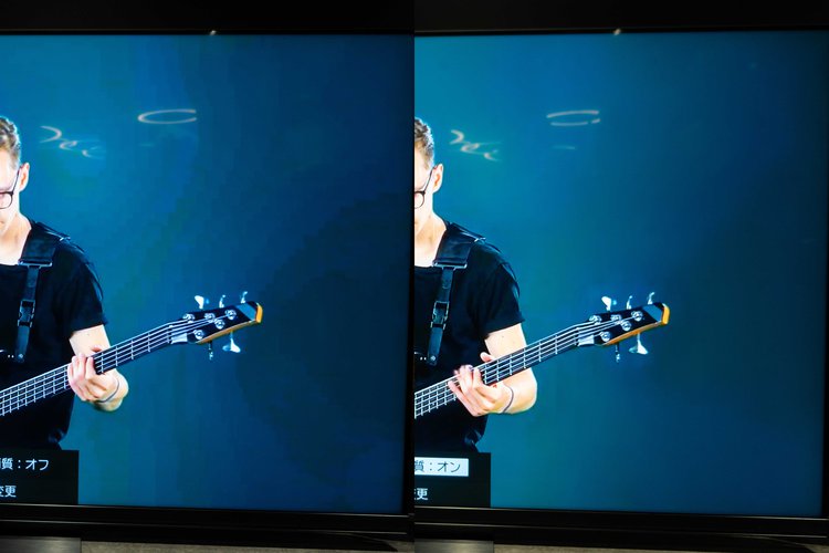 「ネット動画バンディングスムーサー」のオン/オフ比較。写真左がオフ、写真右がオン