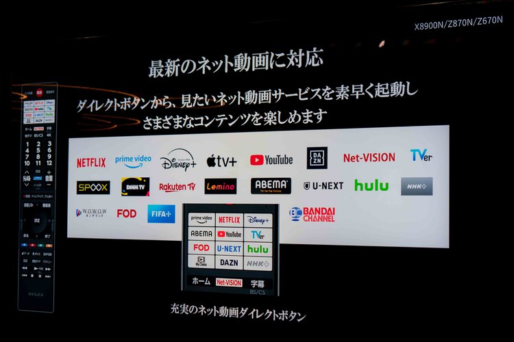 X8900Nシリーズでは、多数のネット動画に対応しており、ダイレクトボタンも13個備える