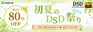 HOME > ニュース > AV&ホームシアターニュース 6月3日(月)23時59分まで mora、坂本龍一やマイケル・ジャクソンなどDSD音源約460タイトルが最大80%オフの「初夏のDSD祭り 2024」 編集部 : 伴 修二郎 2024年04月26日 次の写真へ 「mora 初夏のDSD祭り2024」 次の写真へ この写真の記事へ 関連リンク キャンペーン特設ページ mora