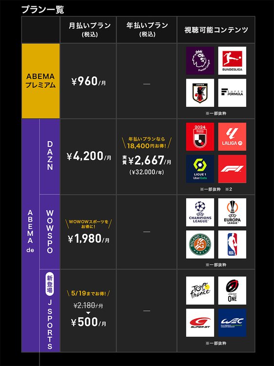 ABEMAで「J SPORTSオンデマンド」が視聴可能な新プラン。プロ野球や国内ラグビーなど