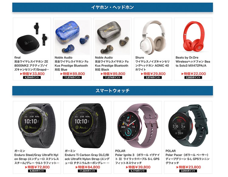 HOME > ニュース > AV&ホームシアターニュース final ZE8000 MK2などが安い Amazonより安い商品も!ヨドバシが週末限定SALE中。13%還元も26日まで PHILE WEB 2024年05月25日 finalのイヤホンはAmazonよりはるかに安い。セール商品の一部 この写真の記事へ 関連リンク ヨドバシ「週末限定SALE」 Amazonタイムセール