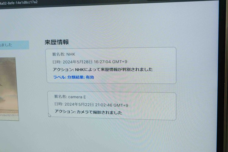 C2PA対応のカメラで撮影された映像の場合は「有効」ラベルが表示される