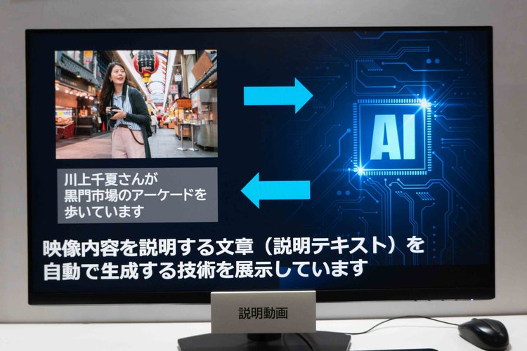 解析技術を駆使した映像説明テキストの生成も展示