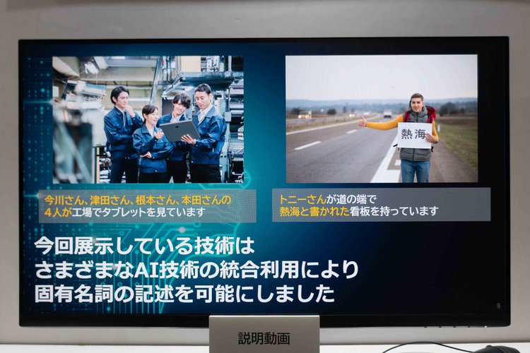 解析技術を駆使した映像説明テキストの生成も展示