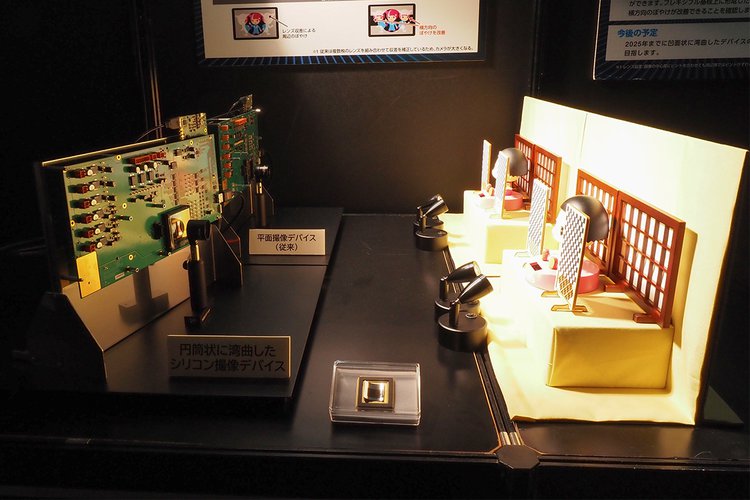 ブースでは平面状と湾曲した撮像デバイスで撮影した映像の比較を展示