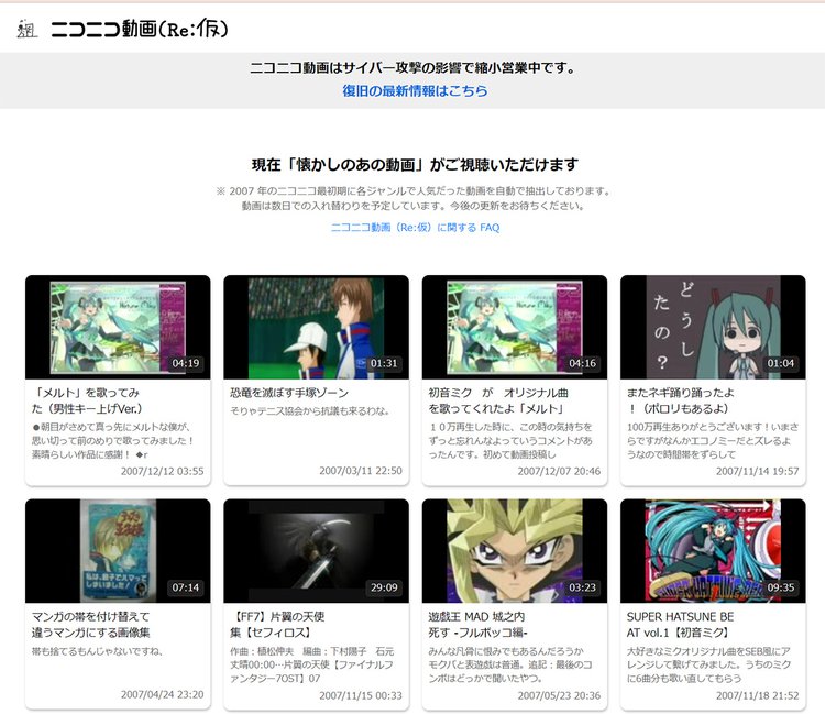 HOME > ニュース > AV&ホームシアターニュース データセンターがランサムウェアを含むサイバー攻撃の対象に ニコニコ動画、サービスの復旧に1ヶ月以上を要するとの見通し 編集部:松永達矢 2024年06月14日 「あの頃」の動画を楽しめるニコニコ動画(Re:仮)をリリース この写真の記事へ 関連リンク 本件のリリース ニコニコ動画(Re:仮)