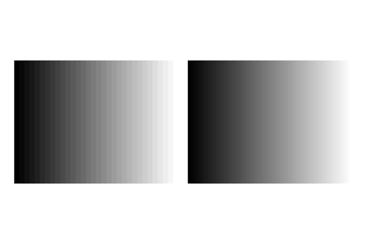 バンディングが多く発生しているグラデーション(左)バンディングが軽減されたグラデーション(右)