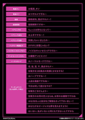 HOME > ニュース > AV&ホームシアターニュース ボイスは完全新録 AVIOT、にじさんじ『壱百満天原サロメ』コラボTWS。本人監修デザイン&描き下ろしパッケージを採用 編集部:松原ひな子 2024年07月25日 前の写真へ 次の写真へ 「TE-V1R-SRM」 前の写真へ 次の写真へ この写真の記事へ 関連リンク 「TE-V1R-SRM」の詳細 AVIOT ONLINE MALL