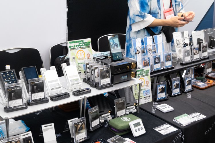 トライブリッドイヤホン、16芯パラジウムメッキケーブルなど高級製品も試聴整う
