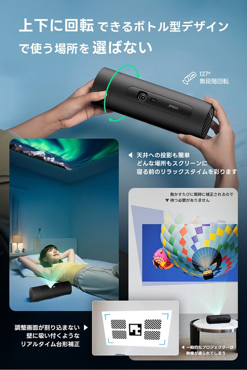 HOME > ニュース > AV&ホームシアターニュース 先行予約受付を開始 JMGO、3色レーザー搭載のジンバル一体型4Kプロジェクター「N1S Pro 4K」。ボトル型のコンパクトモデル「PicoFlix」も 編集部 : 伴 修二郎 2024年09月17日 前の写真へ 上下に回転できる回転式ボトル型デザイン 前の写真へ この写真の記事へ 関連リンク 「JMGO N1S Pro 4K」 「JMGO PicoFlix」 JMGO