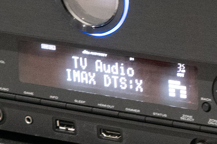 IMAX Enhancedコンテンツに収録されたDTS:X音声フォーマットが入力された際のAVアンプの表示