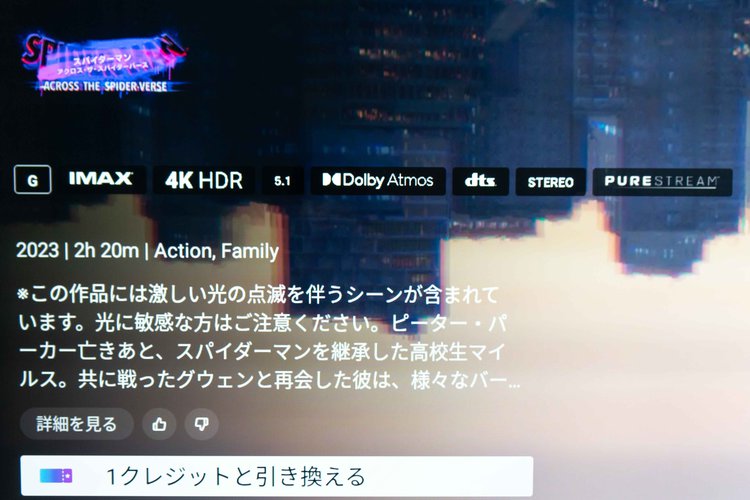「SONY PICTURES CORE」で配信されているIMAX Enhanced対応コンテンツのアイコン表示