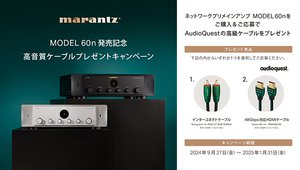 HOME > ニュース > AV&ホームシアターニュース RCA/HDMIケーブルどちらか1つもらえる マランツ、HDMI搭載プリメイン「MODEL 60n」購入でAudioQuest製ケーブルをプレゼント 編集部 : 伴 修二郎 2024年11月05日 次の写真へ 「MODEL 60n」購入者にAudioQuest製ケーブルをプレゼント 次の写真へ この写真の記事へ 関連リンク 本キャンペーンの詳細 マランツ