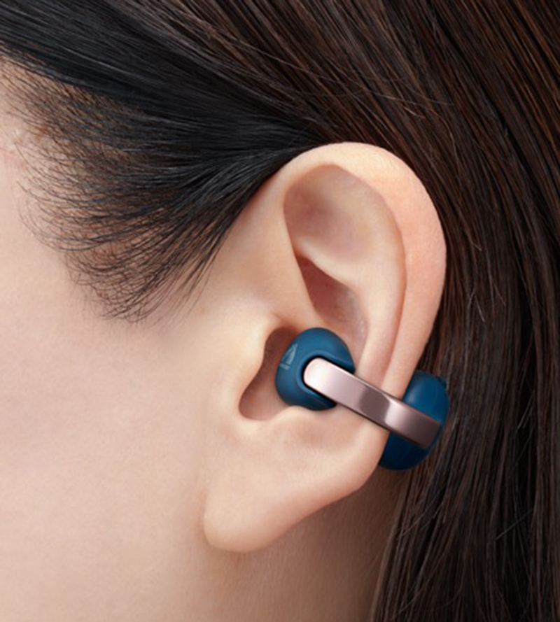 ビクター、イヤーカフ型の耳を塞がないイヤホン“nearphones”「HA-NP1T」。独自「フレキシブルアジャスト」機構を採用