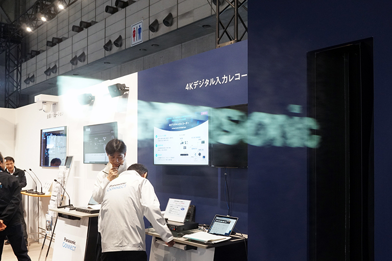 <Inter BEE>パナソニック、シーリングアレイマイクロホン活用のハイブリッド会議をアピール。AVプロセッサーによるカメラ自動追従機能も