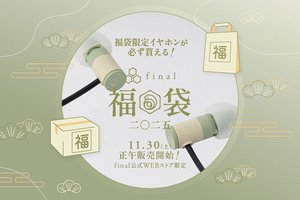 HOME > ニュース > AV&ホームシアターニュース 直販サイトで販売 final、2025年福袋を11/30から販売。最高100万円まで全18種、福袋限定イヤホン「ETOシリーズ」も同封 編集部:小野佳希 2024年11月22日 次の写真へ 「final福袋2025」を直販サイトで販売 次の写真へ この写真の記事へ 関連リンク final福袋2025 詳細ページ