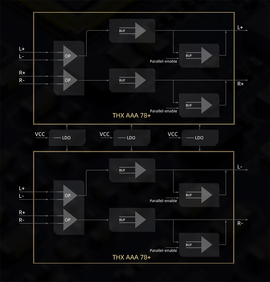 8ch分の「THX AAA 78+」アンプ回路による完全バランス設計