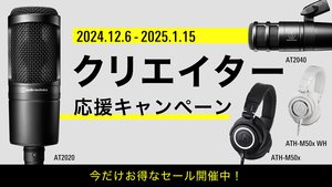 オーディオテクニカ、対象のモニターヘッドホン、マイクロホンを割引価格で購入できるキャンペーン。1/15まで
