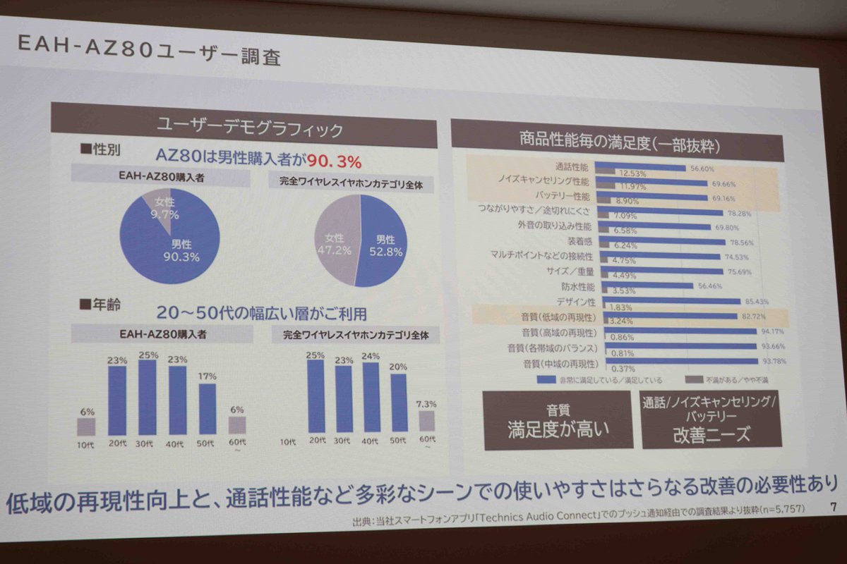 ユーザー調査を実施。音質への満足度が高いなか、通話/ノイズキャンセリング/バッテリーに対して改善の要望があった