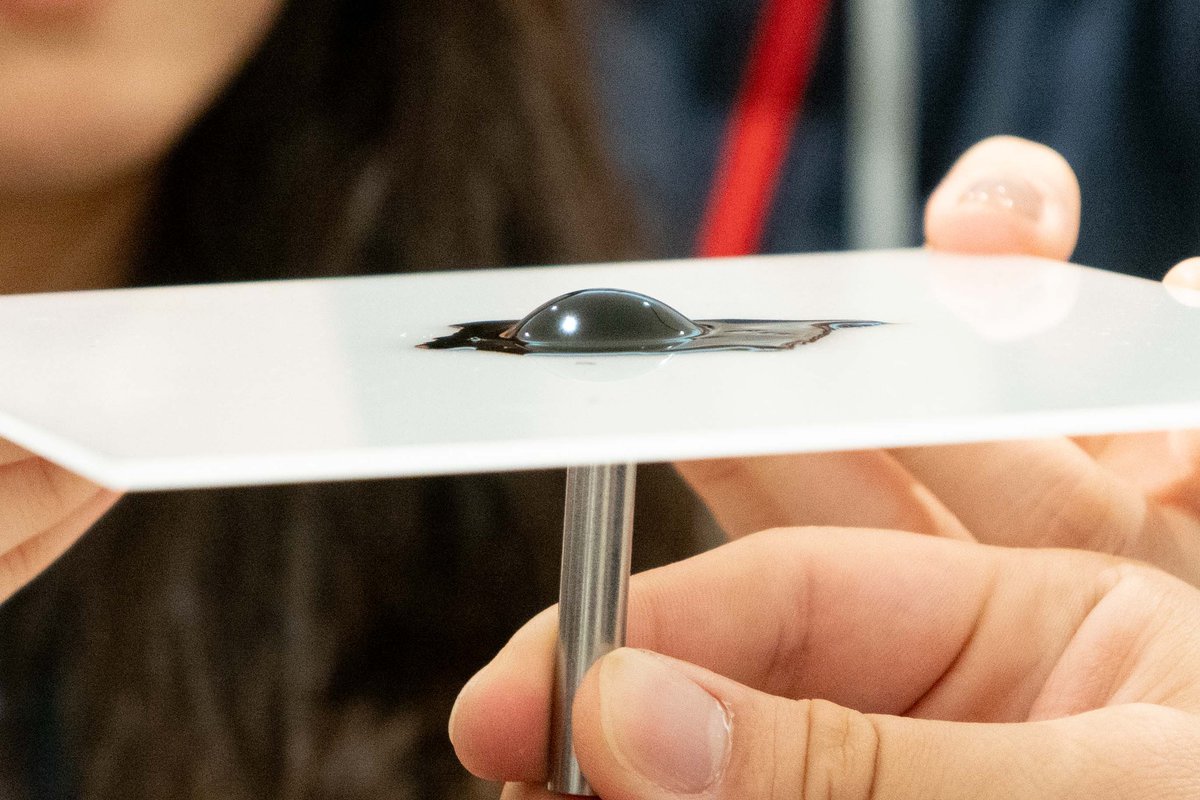 実際の磁性流体も展示されており、磁石を近付けると膨らむように動く