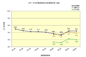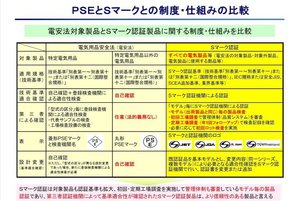 HOME > ニュース > AV&ホームシアターニュース 電気製品認証協議会セミナー「電気製品の安全に関する課題と対策」 リチウムイオン蓄電池搭載製品の発火事故増加やインターネット通販の台頭で高まる第三者認証「Sマーク」の意義 編集部:竹内 純 2025年02月12日 前の写真へ 2020年からネット3社の調査もスタート。従来の調査チャネルより約10ポイントも普及率が低い 前の写真へ この写真の記事へ 関連リンク インターネットで購入したモバイルバッテリーが発火した事故の再現映像(NITE) 電気ケトルに子どもが触れてやけどを負う事故の再現映像 モーションまんが「Sマークってなあに?」(電気製品認証協議会SCEA) みちょば吉村のマブマブTV 「【目指すは家電芸人!?】知って安心!電気製品の知っておきたいこと」