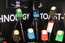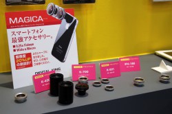 (株)トダ精光のブースには、スマートフォンや携帯電話、コンパクトデジタルカメラ向けのマグネットコンバージョンレンズが出展されている。