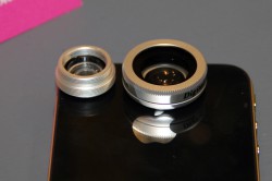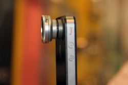 iPhone4/4S/iPad2用の「IP4-WM」は、ワイドレンズとマクロレンズが一体化した製品。2群2枚構成で、そのまま使えば広角0.5倍レンズとして、外側のレンズを外せばマクロレンズとして使うことができる。iPhone4/4S/iPad2用と銘打っているが、レンズ周辺がフラットなスマートフォン/携帯電話であれば装着が可能とのこと。180度魚眼レンズの「IP4-180」も用意されている。