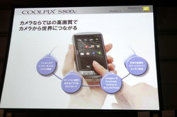 「COOLPIX S800c」はCOOLPIXシリーズの新ラインナップで、Androidを搭載し、スマートフォンのような操作感を実現したことが大きな特徴。Google Playからアプリをダウンロードすることもできる。Android 2.3.3を採用しており、「現時点ではICSなどAndroidのバージョンアップは考えていない」という。