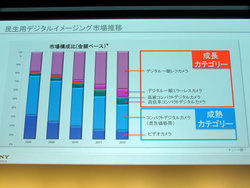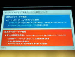 そして成熟カテゴリーでは、ビデオカメラで世界シェア40%という圧倒的シェアを持っていることなどを挙げながら、プロジェクター機能や独自手ブレ補正など新しい提案で引き続きシェアを獲得していくと説明した。