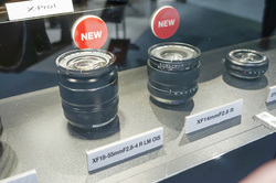 また、XFマウントに追加される新レンズ郡も一部が公開された。公開されたのは、先述したX-E1のキットレンズとしても販売される「フジノンレンズ XF18-55mmF2.8-4 R LM OIS」と、35mm判換算で21mmの焦点距離となる広角単焦点レンズ「フジノンレンズ XF14mmF2.8 R」の2本。