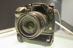 ブーススタッフが「プロカメラマンの要求にも応えられるよう開発してきた」と語る通り、GH2に比べ基本性能が大幅にブラッシュアップされており、ボディは同社マイクロフォーサーズ機としては初となるマグネシウム合金を使用した防塵防滴仕様。イメージセンサーには新開発の有効1605万画素「Digital Live MOSセンサー」、画像処理エンジンには4つのCPUを使用した「新ヴィーナスエンジン」を採用し、さらなる低ノイズ化を実現している。