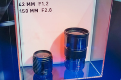 また今回のフォトキナで新たに2本のレンズがロードマップに加わった。開発発表されたのは、45mm/F1.4の大口径単焦点レンズと、150mm/F2.8の大口径望遠単焦点レンズ。ブーススタッフの説明によれば、「既存のXレンズを含むGレンズ群でほぼ一通りの焦点距離をカバーするレンズが揃ったが、今度は高画質な単焦点レンズに対するニーズが高まっている」とのことで、新たな2本のレンズはそのニーズに応えるもの。展示された製品はあくまでモックアップで発売時期や価格などは未定とのことだ。