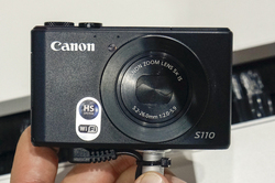 PowerShot S110は、新設計となる高感度性能に優れた有効1210万画素のCMOSセンサーを搭載し、背面モニターはタッチパネルを採用。先代機で特長的だったコントロールリングも引き続き搭載する。大きな進化点はWi-Fi機能が内蔵された点で、専用アプリをインストールしたスマートフォンやタブレットとの連携が可能になった。