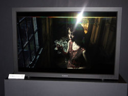 4K関連では、キヤノンがCINEMA EOSシステムを使って撮影した4K映像を上映するシアタールームをブース内に展開。上映後には参考展示の4K対応業務用ディスプレイも見ることができる。なお、同ディスプレイは「あくまで今回は参考展示。詳しいことはまだ言えない」(同社説明員)という。