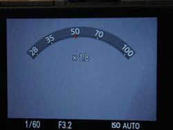 機能面では新たに5段階のステップズームに対応。ボディ前面のリング操作に連動し、35mm換算で28mm/35mm/50mm/70mm/100mm相当へと5段階でズームする。ズーム倍率は単焦点レンズでよく使われるものを調べ、これらの焦点距離をより簡単に選べるようにした。