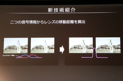 今回搭載された新開発CMOSセンサーは、全有効画素が「撮像」と「位相差AF」の機能を兼ね備えているのが特徴。1画素が独立した2つのフォトダイオードで構成されており、それぞれの信号情報からレンズの移動距離を算出。ライブビュー撮影時に撮像画面の縦横約80%の測距エリアで、ファインダー撮影時と同様に最終合焦まで位相差AFが可能なため、これまでの撮像面位相差AFよりも合焦時間が短く、動く被写体に対する追従性に優れるとのこと。動画撮影時の動画サーボAFの追従性も向上しており、滑らかなAF動作を実現するという。