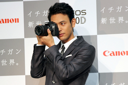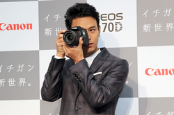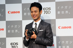 ミラーレス一眼「EOS M」に加えて本機のコミュニケーションパートナーを務める妻夫木さん。自身もEOS MからEOS 70Dに“ステップアップ”したばかりだという。