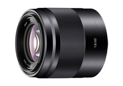 50mm標準レンズ「E 50mm F1.8 OSS」の新色となる「ブラック」。これまで用意されていたカラバリはシルバーのみで、「NEX-7」「NEX-6」のユーザーからブラックを切望する声が多かったことから開発された。鏡筒のカラー変更以外、基本性能に変更は加えられていない。焦点距離は35mm判換算で75mm。レンズ構成は8群9枚。