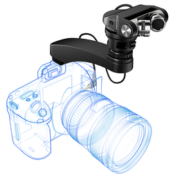 アクセサリーシューに装着し、音声ケーブルを接続するだけで高品位な音声収録が可能になるX-Y方式のステレオコンデンサーマイク。デジタル一眼レフカメラでの動画撮影において活躍するとしている。