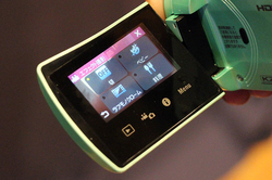 ディスプレイは、本体の小型化にともない画面サイズ1.8型ワイド(8.4万ドット)と小さいが、見やすさに配慮したUIを採用した。操作はタッチパネル方式。撮影データの記録は内蔵メモリー(8GB)もしくはSD/SDHC/SDXCカードに行う。