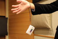 女性の手のなかにすっぽり収まるボディ。小さな子供を持つ女性は、外出時に荷物が多くなりがち。小さなボディは持ち運びが気にならず、食事などの際テーブルの上に置いても邪魔にならないとしている。