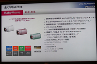 JVCケンウッドは、ビデオカメラ“Everio”の新コンセプトモデルとして、世界最小・最軽量で、子育て中の女性をターゲットにした“BabyMovie”シリーズ「GZ-N1」を12月下旬より発売する。価格はオープンだが、7万円前後での販売が予想される。
