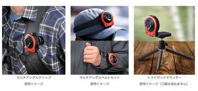 さらにオプションとして、リュックサックなどにカメラ部を取り付けたまま360度回転できる「マルチアングルクリップ」(2,500円/税抜)、カメラ部を手首や頭部に取り付けて360度回転できる「マルチアングルベルトセット」(3,500円/税抜)、カメラ部やコントローラーを市販のアタッチメントにワンタッチで取り付けられる「トライポッドマウンター」(2,000円/税抜)などを用意。幅広い撮影スタイルに対応できる。