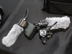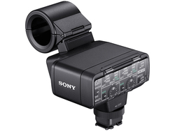 多様なプロ用マイクが装着できるXLR端子インプット。2チャンネルまでのマイク・ライン入力が可能。L字ブラケットを使用せずにMIシューへ直接接続できる。マイクホルダーは防振性能を高めており、ファータイプのウインドスクリーンを採用している。同梱マイクはモノラルショットガンマイクロホン「ECM-XM1」。