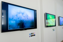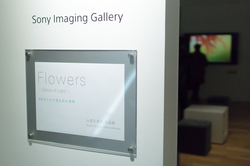 展示には、ソニーの4K対応ブラビア、65型の「KD-65X9500B」1台、49型の「KD-49X8500B」6台を使用。それぞれに映し出される作品は、いずれも“花”が持つ鮮やかな色、繊細な色をクローズアップで幻想的に切り取っているが、実際に鑑賞して印象的だったのは、光の強弱によって表現される眩さや透明感。いずれも透過光で作品を鑑賞する4Kテレビ展示ならではといえる表現で、反射光で鑑賞するプリント展示とは一味違った世界感を味わうことができる。
