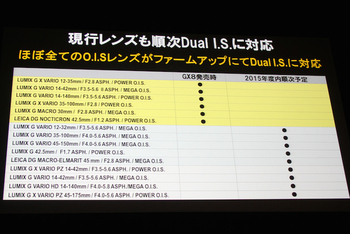 現行レンズも順次Dual I.S.に対応するとのことだが、Dual I.S.非対応レンズの場合、手ブレ補正機能に対応したレンズはレンズ内手ブレ補正のみ、手ブレ補正機能に非対応のレンズはボディ内手ブレ補正のみが働く。