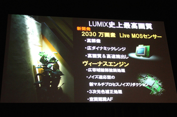 発表会では、LUMIX G レンズシリーズに、LUMIX初のLEICAズームレンズ「LEICA DG VARIO-ELMAR 100-400mm/F4-6.3」と「LUMIX G 25mm/F1.7」を加えることも発表され、2製品とも会場で参考展示されていた。