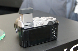 ファインダーには、約236万ドットの有機EL(OLED)を採用。サイズは0.5型で、ファインダー倍率は約0.77倍と約0.7倍に切り換え可能(35mm判換算)。また、上に向かって90度可動するチルト機構を採用している。