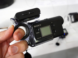 また、ソニーは“アクションカム”用アクセサリーとして、フィンガーグリップ「AKA-FGP1」を参考出展。こちらは型番まで付いているものの、「発売するかどうかも含めて検討中」(同社スタッフ)とのことだった。
