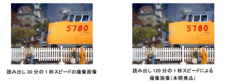 また、フルHDサイズで毎秒最大1,000フレームのスーパースローモーション動画の撮影もできるようになった。通常速度の撮影データと、DRAMに蓄積した1,000フレーム/秒のデータとを本イメージセンサーから出力し、外付けのISP(画像処理回路)で信号処理することで、通常速度の動画とスーパースローモーション動画をシームレスにつないだ作品なども撮影できるようになる。DRAMに蓄積した高速撮影データは、通常の速度で出力するため、従来のISPをそのまま流用することも可能とのことだ。
